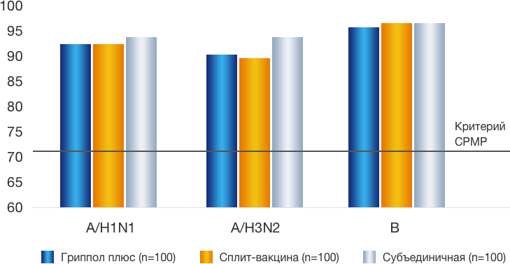 антигенам актуальных штаммов вируса гриппа и сопоставим с группами сравнения сплит-вакцина и