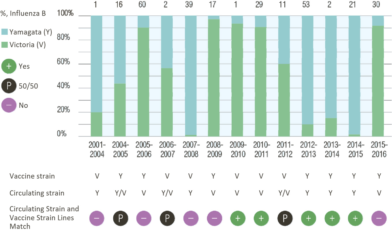Since 2012, WHO has been recommending the inclusion of both Yamagata and Victoria influenza B viruses in seasonal influenza vaccines on annual basis